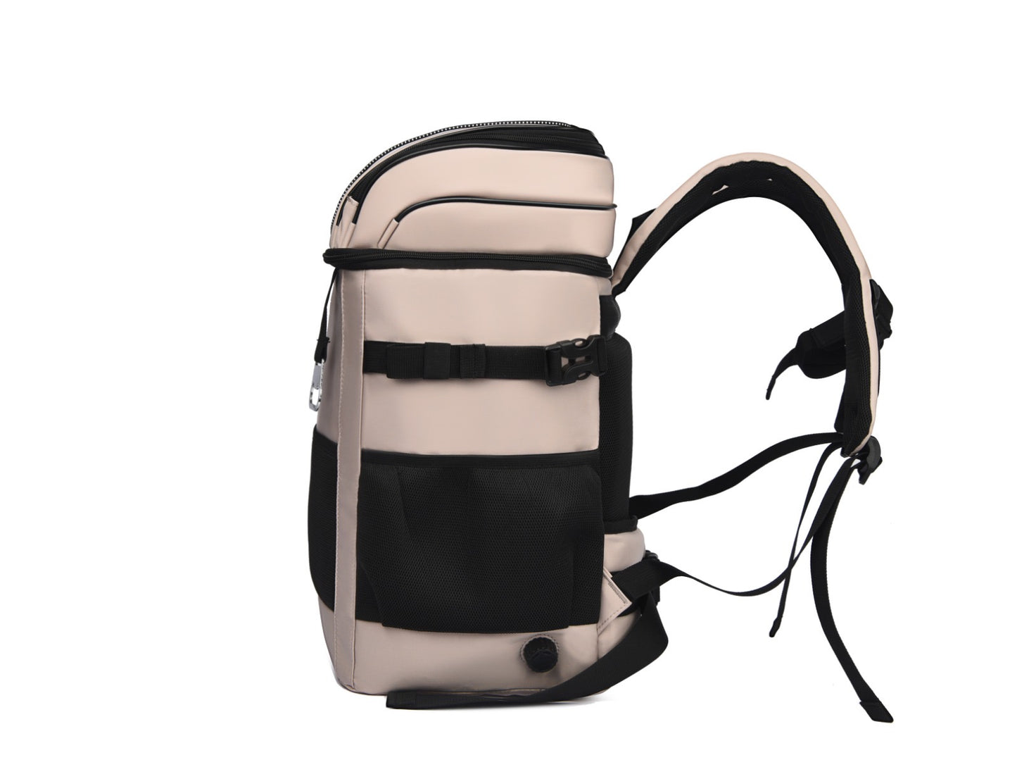 - Extras: Large zippered top compartment for phone/keys/valuables, mesh side pockets, shock cord for towel