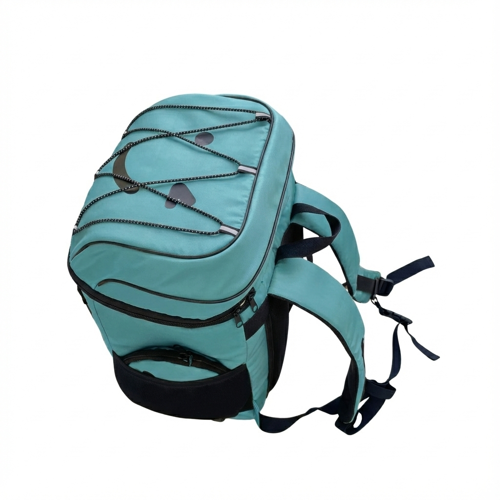 - Extras: Large zippered top compartment for phone/keys/valuables, mesh side pockets, shock cord for towel