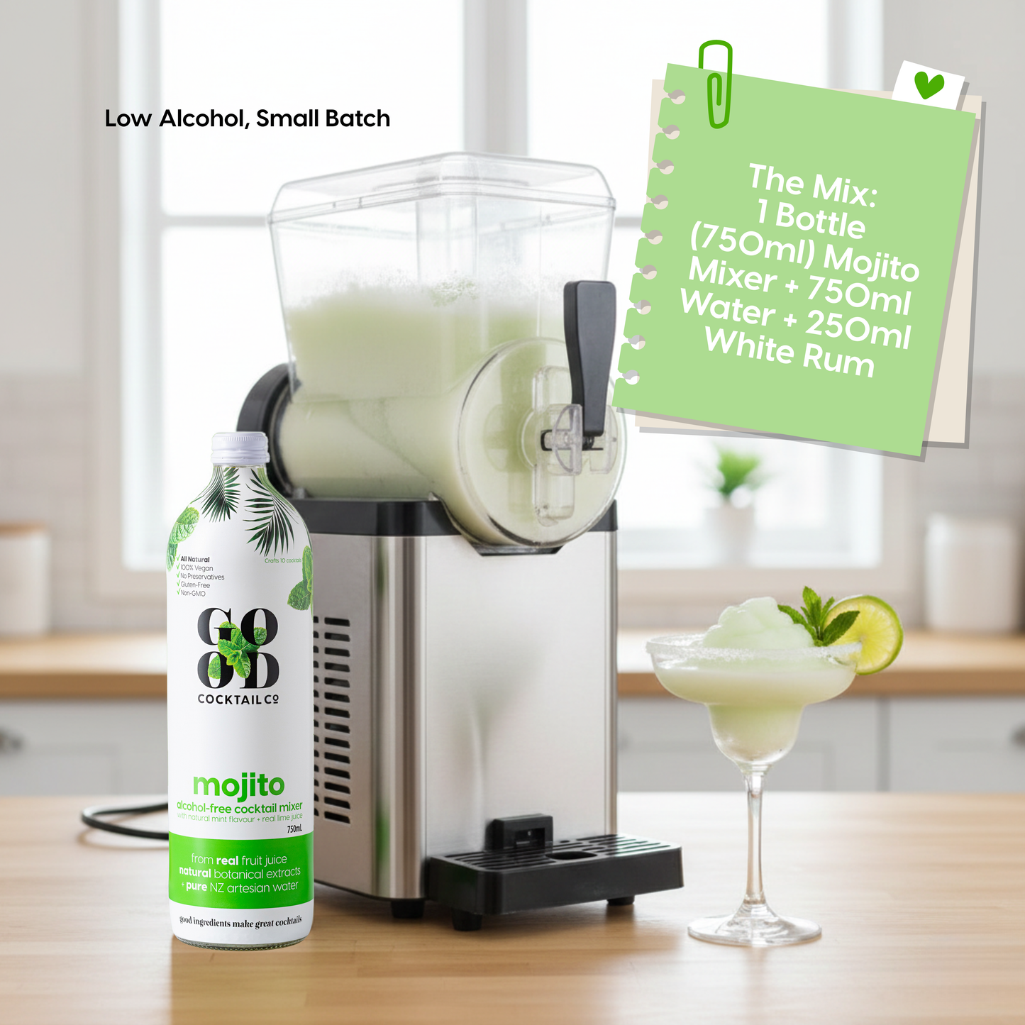 The refreshing mojito starts with real ingredients. Good Mix Cocktail Co's Mojito Mix is crafted in New Zealand with fresh mint, real lime juice and crystal-clear artesian water—delivering the vibrant, herbaceous flavour that makes this Cuban classic so irresistible.